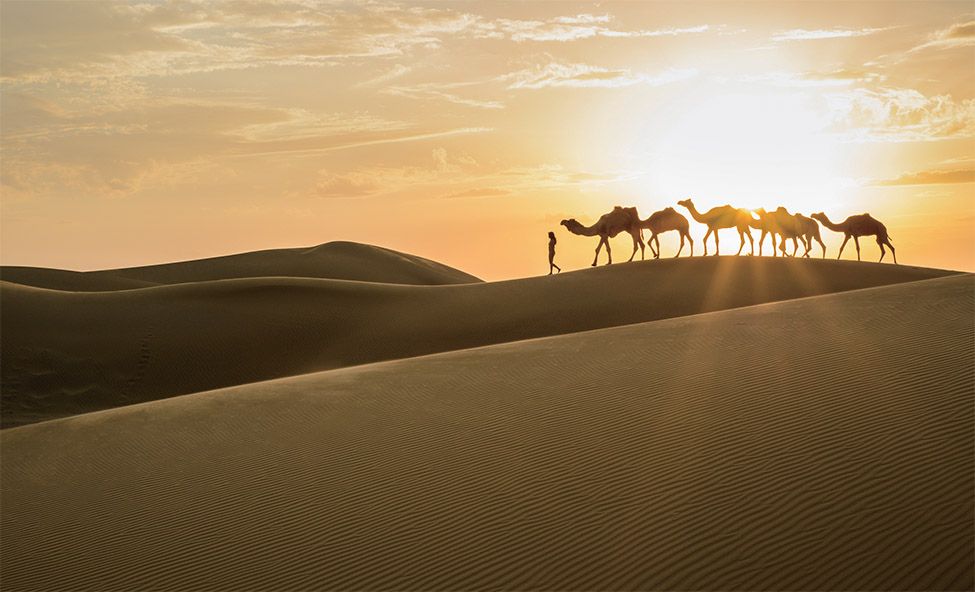 낮에는 뜨거운 햇빛을 모래사막이 흡수하고 있어서