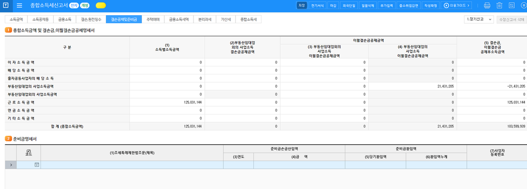 부동산임대업(701201)은 올해 결손이 났습니다 (-42,862,410원/공동대표자라 -21,431,205원)