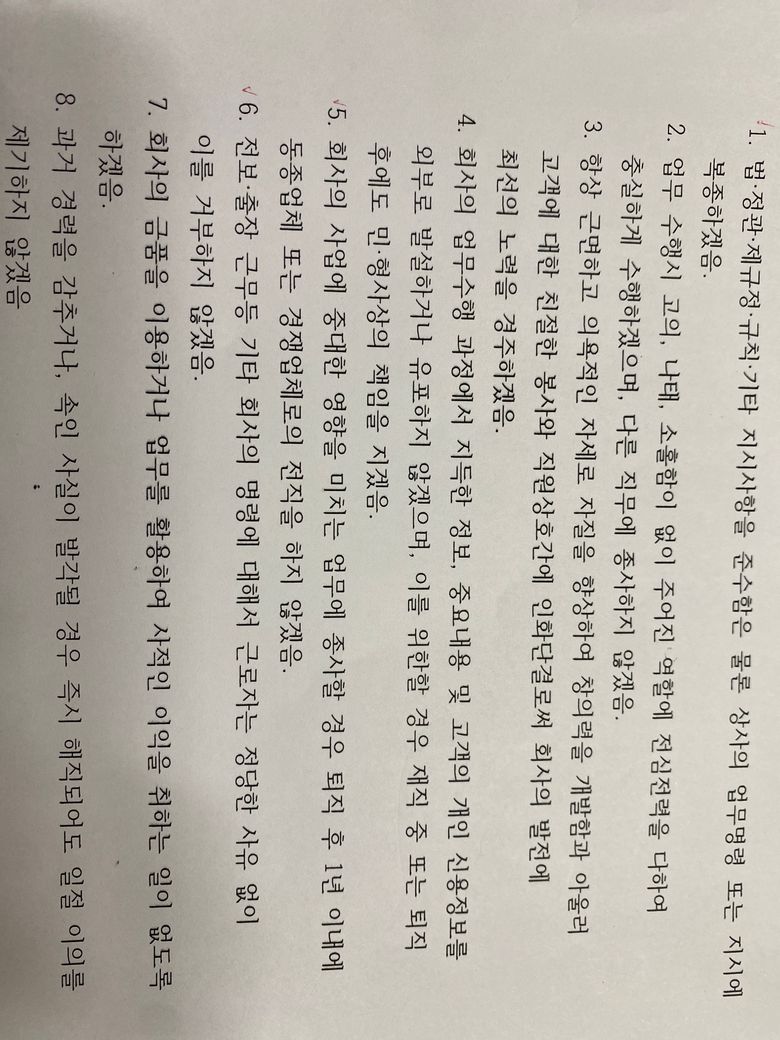 입사시 이 서약서 작성을 거부할 경우 회사가 채용을 거부할 수도 있습니다.