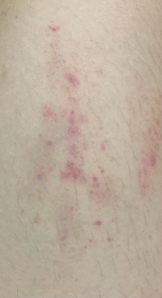 피부를 긁을 때 핏줄이 터지거나 멍이 들어서는 것은 피부가 상당히 민감하고, 혈관이 약한 상태를 나타낼 수 있습니다. 혈액검사상 혈소판감소증이나 응고인자 감소가 없다면 우선 경과를 보실수 있을 것으로 사료됩니다.