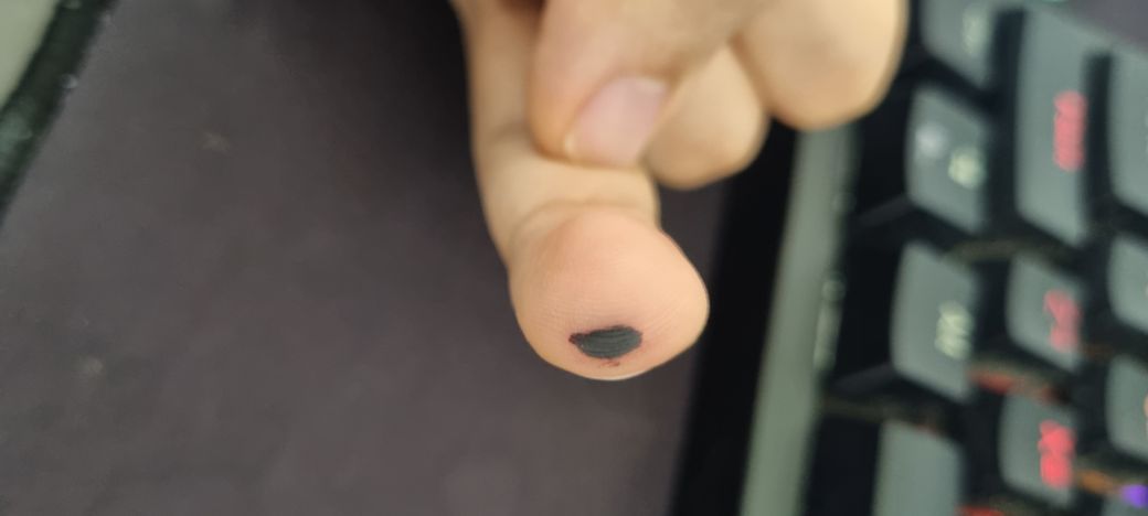 고름은 없고, 피멍이 든 상태입니다. 시간이 지나면 옅어지고 흡수될테니 건들지 않는게 좋습니다.