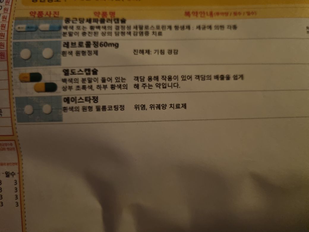 사후 피임약 복용 후 감기에 대해 처방된 세파클러캡슐, 레브로콜정, 엘도스캡슐, 에이스타정을 복용하셔도 됩니다.