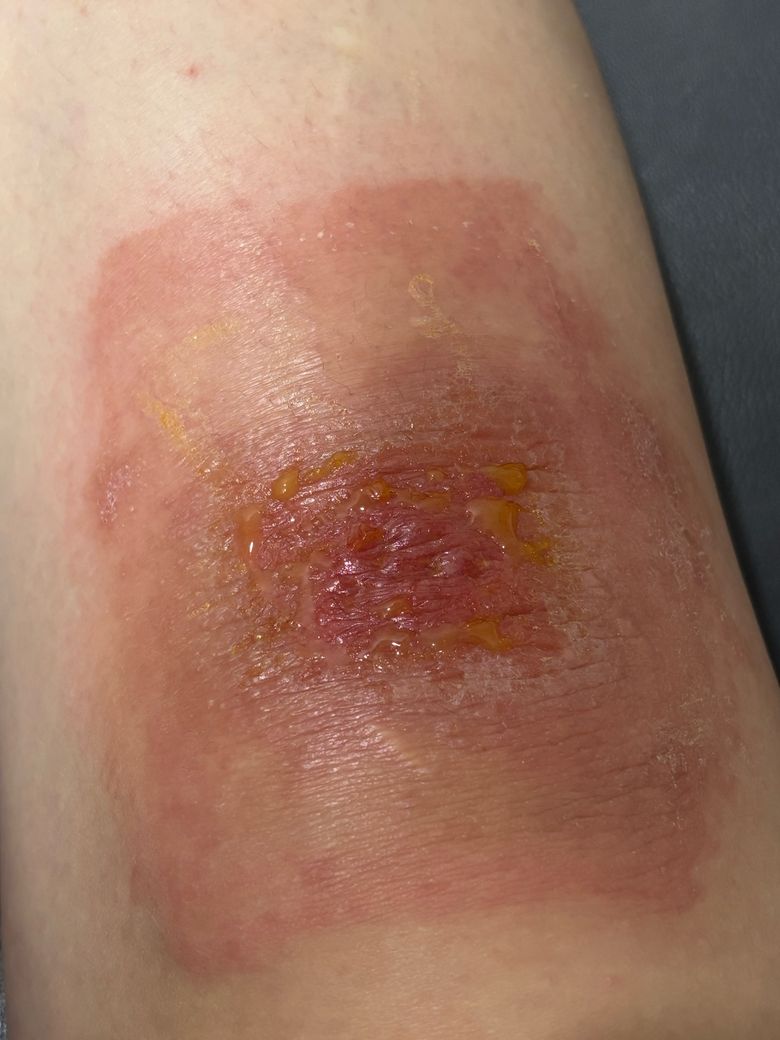 오늘 피부과에서 약 처방 받았는데 곰팡이균? 치료약만 얇게 펴바르고 마르게 두라고 하셨는데 진물이 계속 나고 있어서요