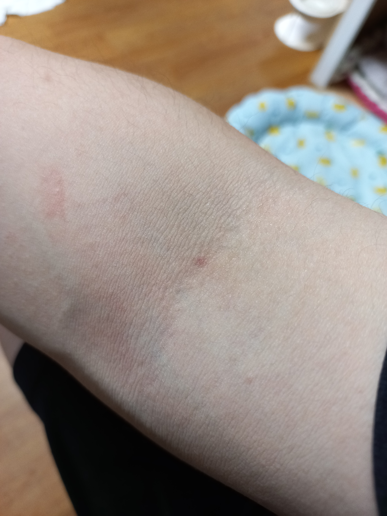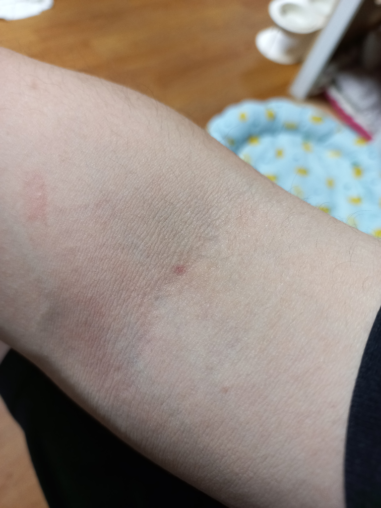 단지. 신경이 쓰이신다면, 주사 바늘 자국이 있는 곳에