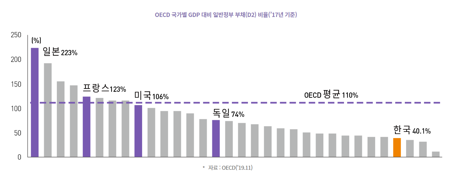 이 재정건전성을 판단하는 명확한 기준은 없으나 우리나라의 경우는 '국가재정법'에서 "건전재정을 유지하기 위해 국가채무를 적정수준으로 유지하도록 노력해야 한다"라고 규정하고 있는 상황입니다. 유럽연합(EU)에서는 회원국의 재정을 건전하게 운용하기 위해 ‘마스트리히트조약(Treaty of Maastricht)’과 ‘안정·성장 협약(The Stability and Growth Pact, SGP)’에 따라 국내총생산(GDP) 대비 3% 이하의 재정적자와 GDP대비 60% 이하의 국가채무를 기준으로 정하고 있다고 합니다.