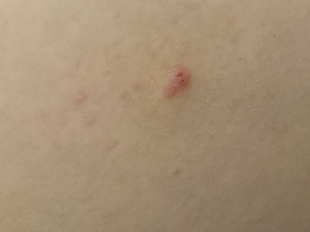 두드러기나 피부염의 가능성이 있습니다. 두드러기는 음식물, 약물, 스트레스, 환경 변화 등에 의해 잘 생기지만 정확한 원인을 찾기는 힘들어 대증적인 요법을 사용하여 치료합니다.