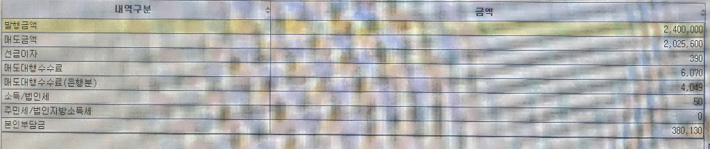 현재 지금 기준으로 240만원에 대한 채권 매입비용은 사진을 참조해주세요
