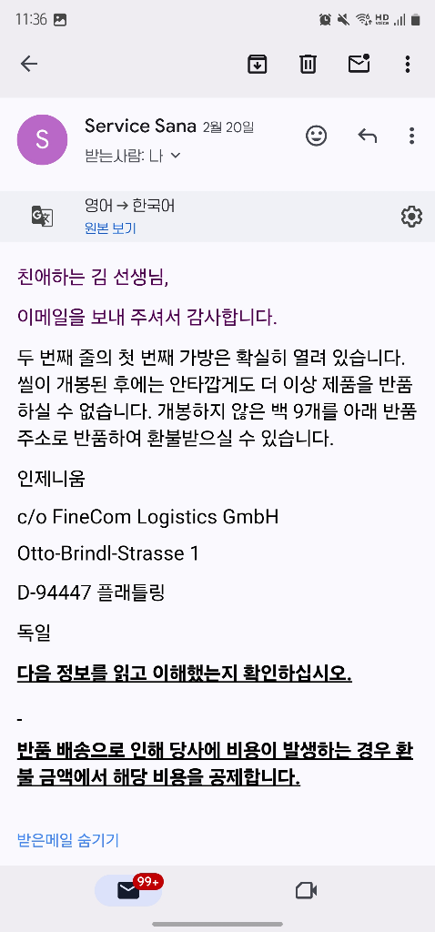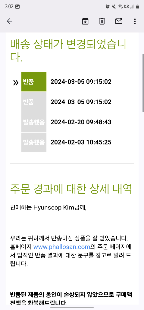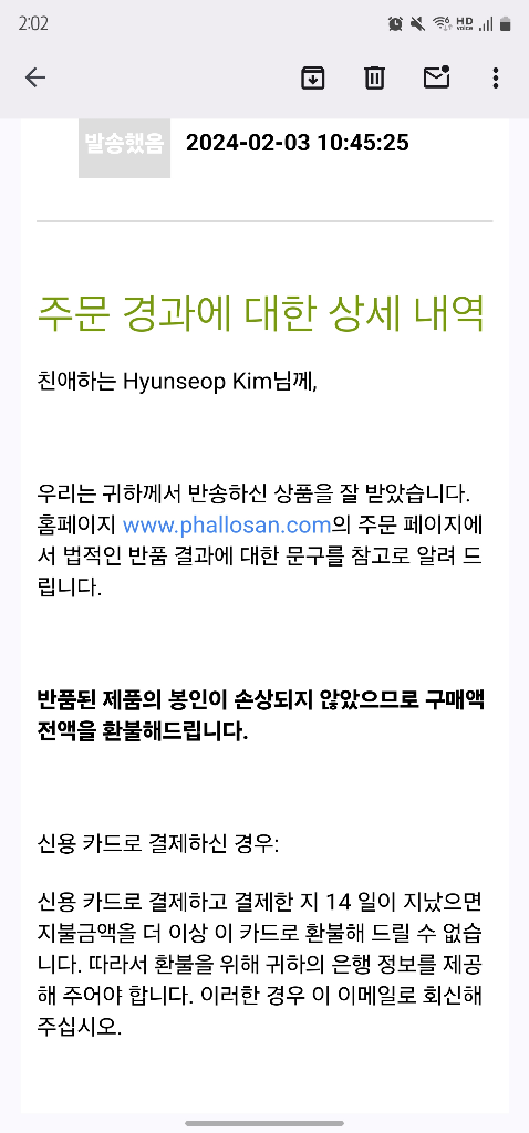 2월 20일날 환불해준다고 메일이 옴.