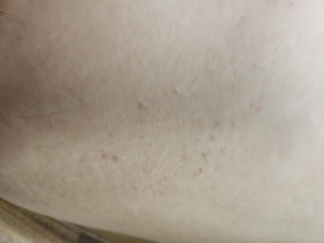 사진으로 보기에 허벅지 내측에 피부는 모공각화증이 있으신것 같습니다