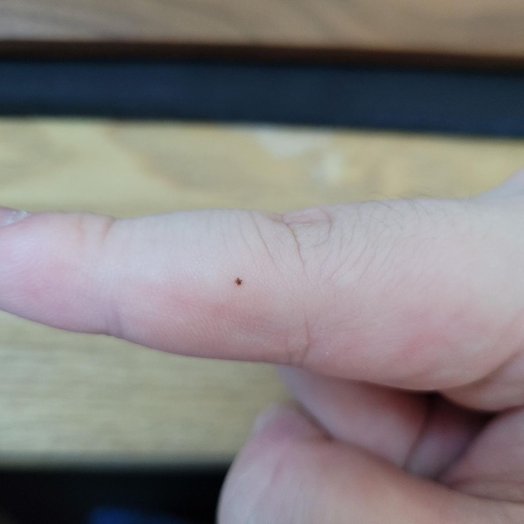 사진처럼 작은 점이 검지손가락 바깥쪽에 있습니다