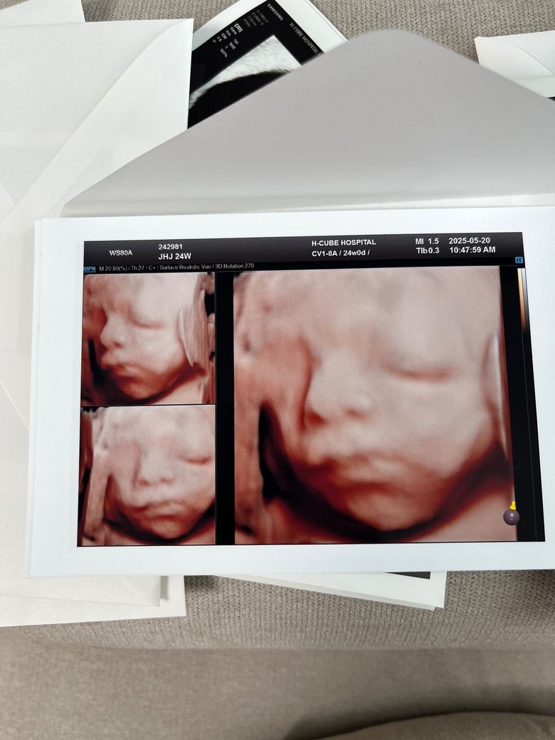 안녕하세요, 사진 순으로 24주차 입체초음파, 그 다음 두 장은 36주차 일반 초음파 사진입니다.