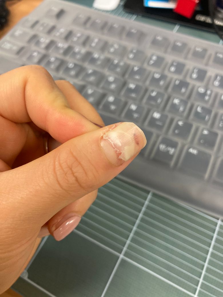 사진에 보다시피 새로 나는 손톱 절반은 붙어있오, 나머지 절반은 떨어질랑말랑 약간 달랑거리면서 붙어있습니다. 또 다 떨어진건 아니고 어느쪽은 손톱이 아직 붙어있어서요 ㅠㅠㅠ 그래서 굳이 손톱깎이로 잘라내진 않았어요..