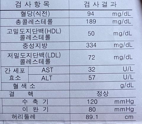 - 사진 속의 수치들은 당뇨나 고혈압을 의심할 만한 부분이 있어 보이지 않는 수치들입니다. 또한 이외의 수치들도 멀쩡해 보이므로 너무 걱정할 것 없겠습니다.