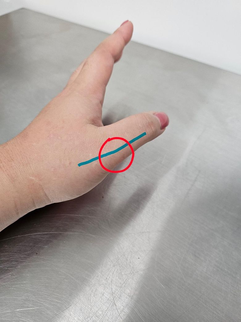 손가락 접히는부분과 파란색 혈관이 맞닿은 부분이 아픈데