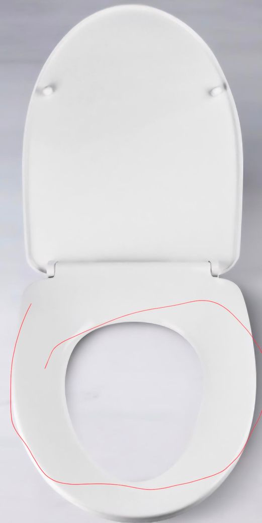 변기 아랫쪽에 있는 고정 너트를 풀고, 변기 시트를 앞쪽으로 살짝 당긴 후 다시 너트를 잠구어서 고정해 보세요. 시트가 앞쪽으로 좀 나오면 고정될만한 공간이 생길 것 같습니다!