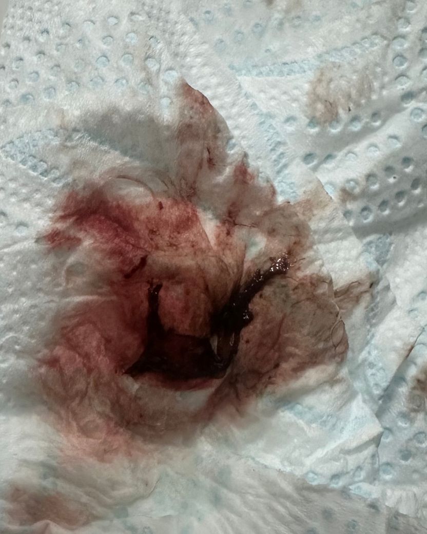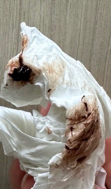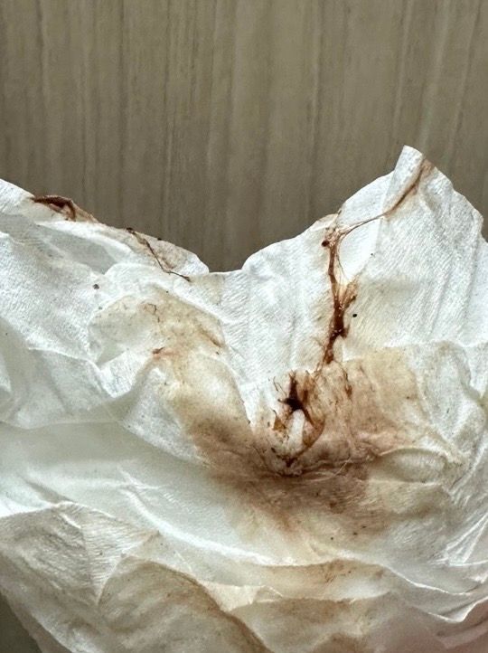 20일인 오늘 사진 첨부처럼 묻어나올때도 있고 소량 묻어나올때도 있습니다. 갈색과 빨간색이 함께 섞여 나왔고 변기에는 피는 없었지만 덩어리는 한개 있었습니다. 소변색은 너무 정상입니다. 왜그런걸까요?