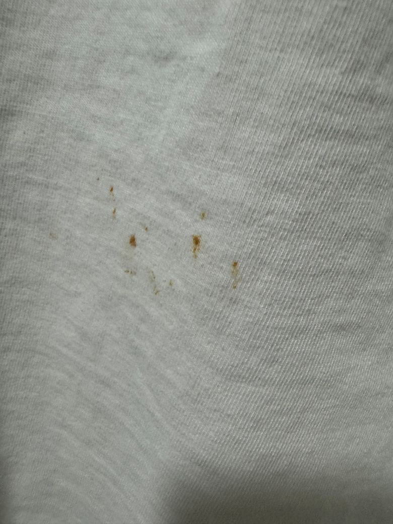 재질이 면종류이라면 잘 않지워 져요손소독제를 묻혀 문질러 보시고 않되면 과탄산소다를 얼룩에 묻히고 뜨거운물을 부어 보세요. 삶은 빨래 할때같이 거품이 나는데 시간이 수분 지난다음 빨아 보세요.