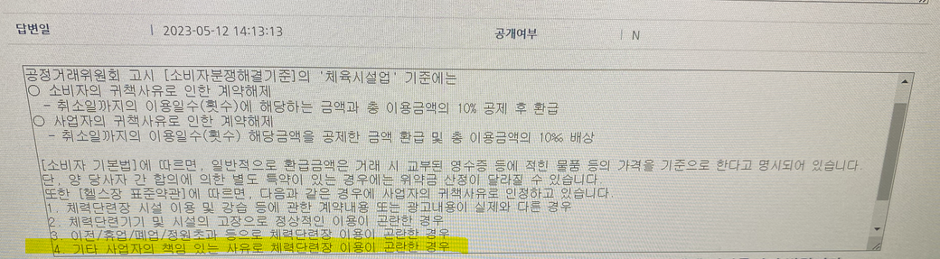환불을 받으러 갔는데 위약금을 제외하고 남은 회차에 대해서만 환불이 가능하다고 하네요