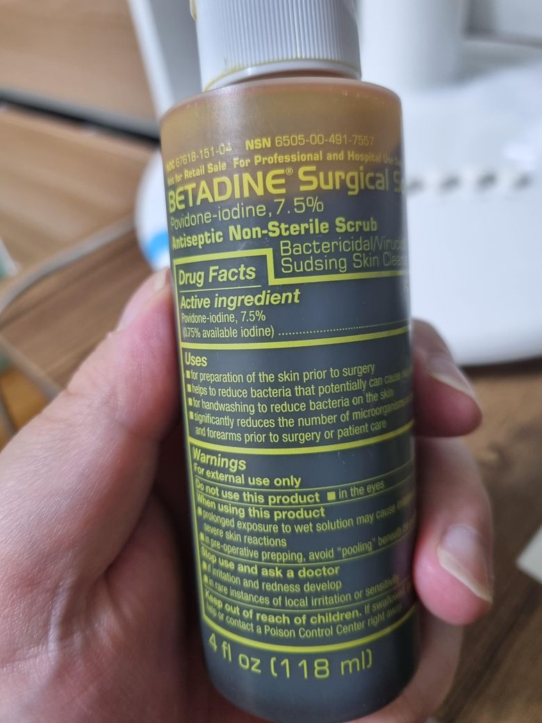 일명 빨간약으로 불리는 베타딘(포비돈-아이오딘) 7.5% 손 세정제로 머리감아도 되나요?