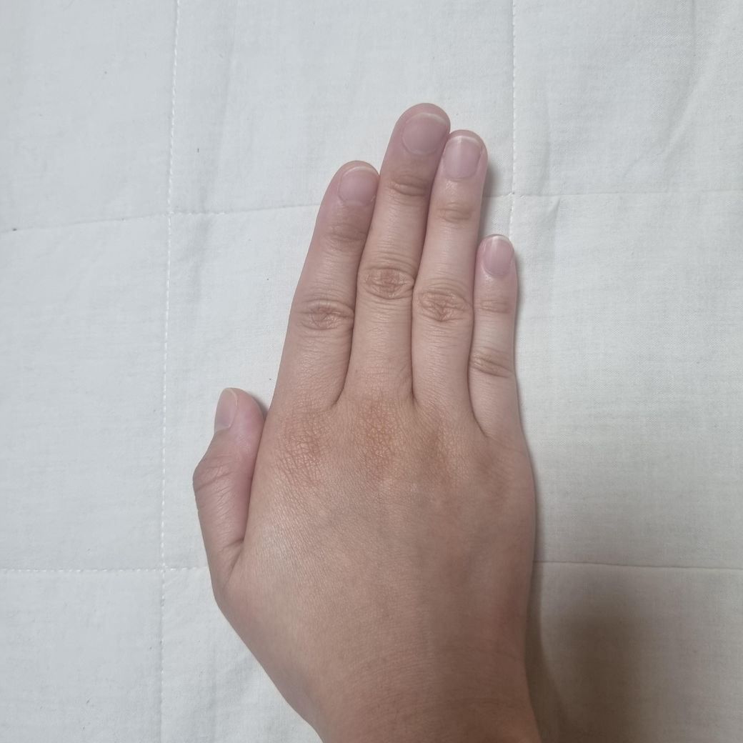 손가락에 힘을 세게 준 상태로 딱 붙여서 바닥에 놓으면 새끼손가락 쪽으로 좀 휜 모양인데요 이런 손모양도 있는건가요? 혹시 류마티스일까 걱정이 되어서요