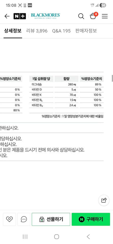 종합비타민과 칼마디 제품 사이에 비타민D나 마그네슘 성분이 중복되긴 하지만, 일반적인 성인 남성 기준으로 충분히 하루에 복용이 가능한 용량입니다
