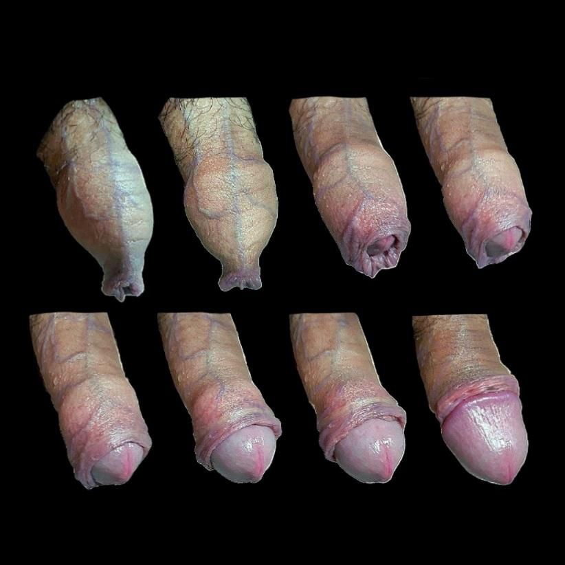 첫째 사진처럼 발기 상태에도 껍질 늘어진 모양으로 덮여있고