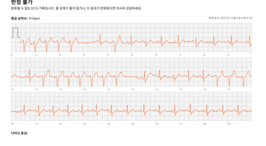 또한 워치로 시행하는 심전도는 정확성이 떨어지기 때문에 트레드밀검사 등의 추가검사를 받아보시는 것을 권유 드립니다.