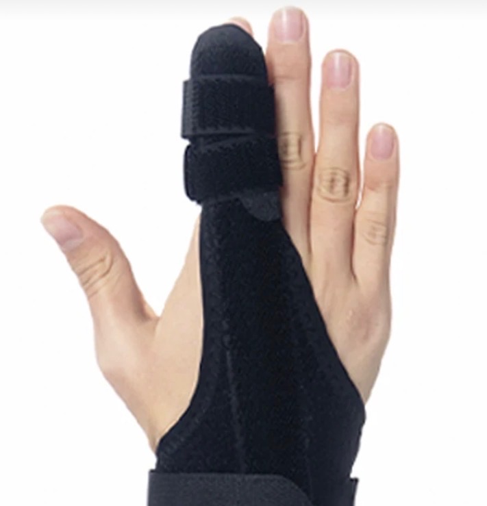 손목과 손가락을 연결하여 고정하는 형태의 보호대나 옆손가락과 함께 고정하는 형태의 제품을 고려해보시는 것을 추천드립니다.