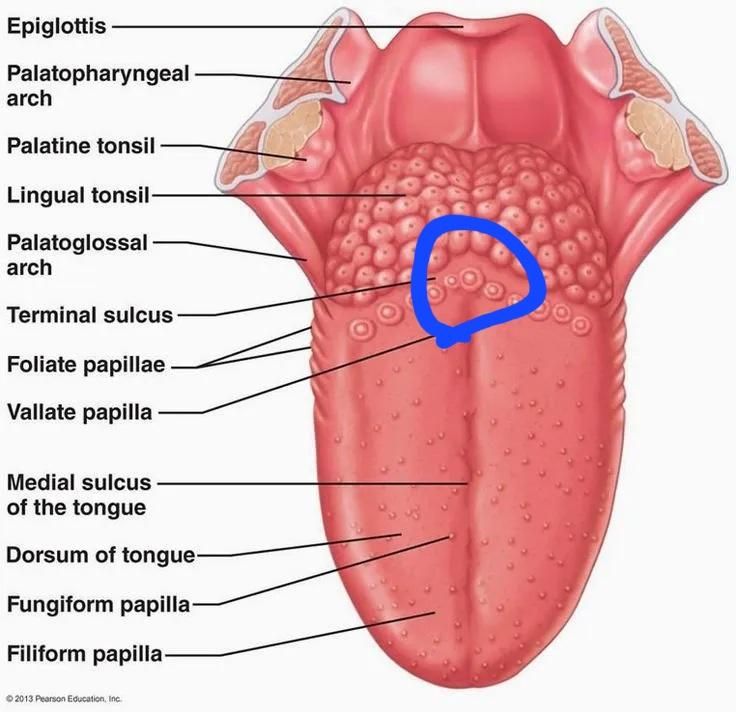 Lingual tonsil이라고 적혀있는 면역기관의 비대이지 않을까 의심됩니다.