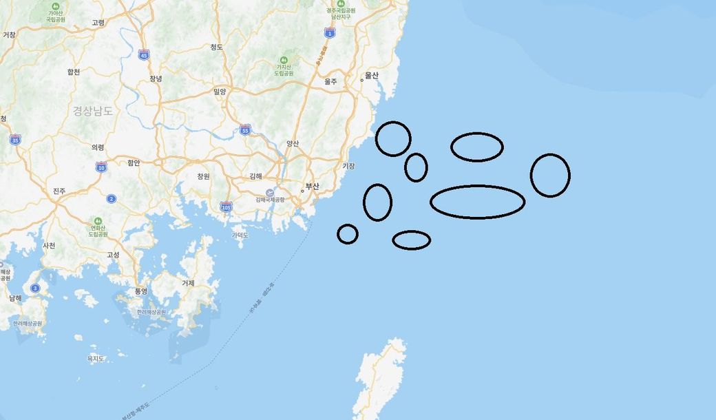 검은색 동그라미는 실제 있는 섬이 아니고 제가 그린겁니다.