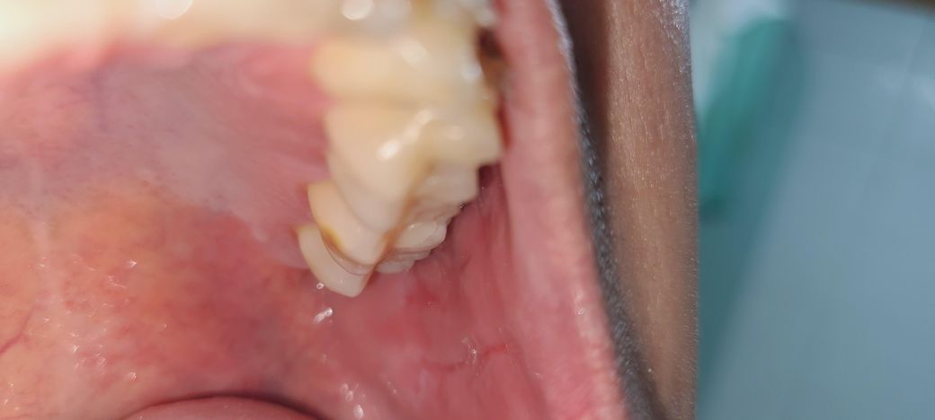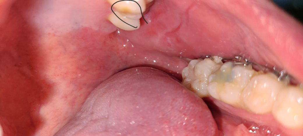 제 치아 사진인데 왼쪽 위 어금니 안쪽 사진인데 동그라미 친 곳에 갈색 점이 있는데 충치인지 확인 부탁드립니다. 치과가기 전에 질문 드립니다.