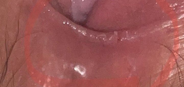 헤르페스나 곤지름 등의 성매개성 질환에서 관찰되는 수포성 병변이나 사마귀 형태의 병변이 아니므로 성매개성 피부 질환으로 보기는 어렵습니다. 담당의의 의견처럼 성관계로 인한 마찰로 일부 점막 손상이 발생하였을 가능성이 높습니다.
