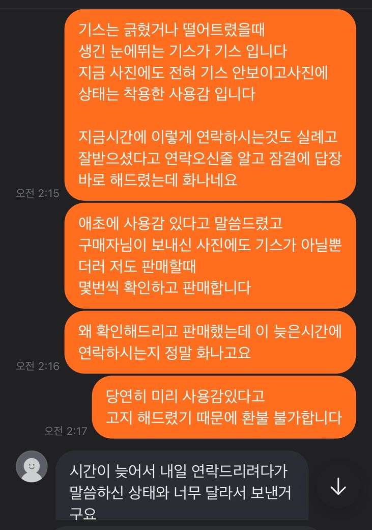 설명한 상태와 다르다며 사진을 보낸 후 환불을