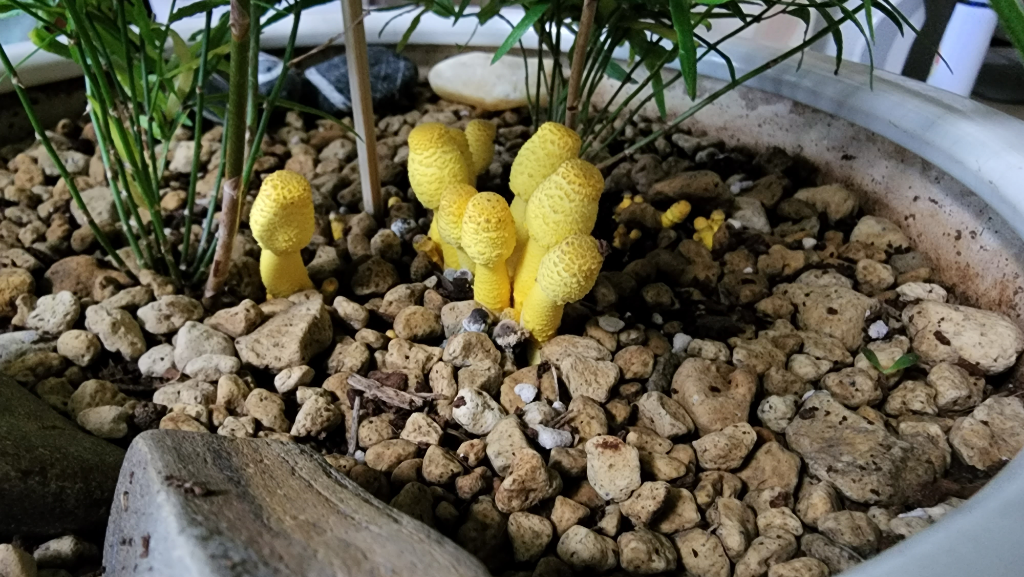 요즘 화분에 이 노랑버섯이 자꾸 나옵니다 다른 화분에서 나오기 시작해서 이 화분에서도 나왔네요.