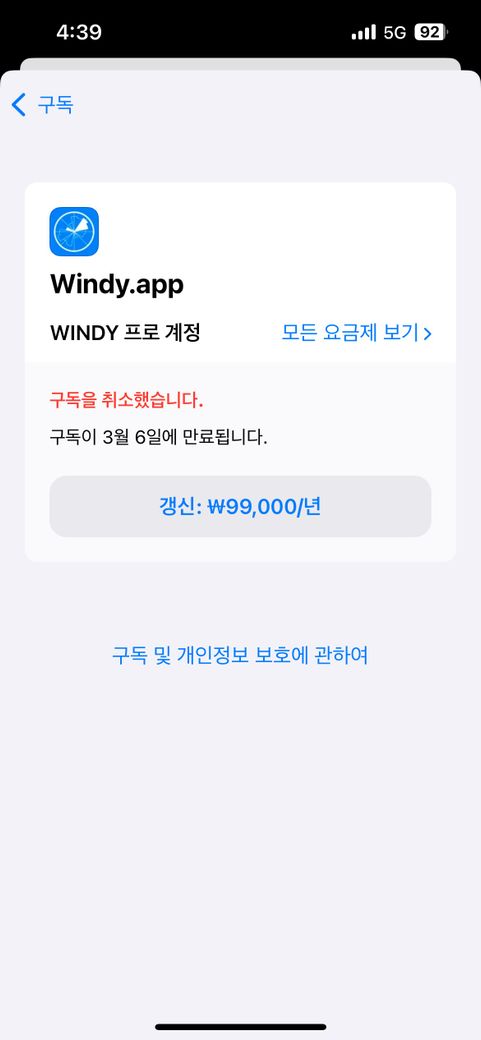구독이 3월 6일자로 끝난다고 되어 있는걸 보니 구독은 취소 되었지만 한달치 구독 요금은 나갈거 같습니다. 애플 어플리케이션에서 잘못 구독을 신청했을 경우 환불 신청을 하면 환불을 승인 해 줄 가능성이 높으니 환불 신청을 잊지말고 하시길 바랍니다