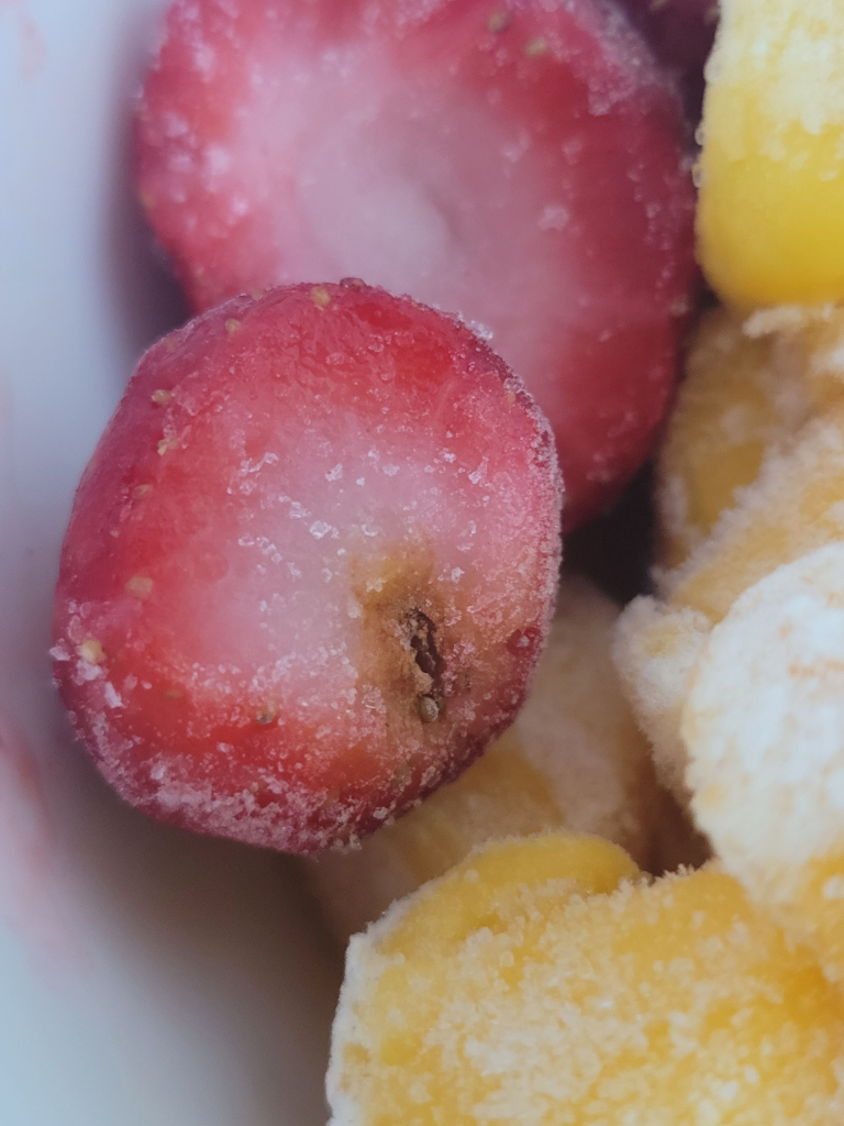 냉동딸기를 시켰는데 노랗게 푹 패인채로 얼어서 온게 왔는데요 이게 썩어서 먹으면 안되는 건지 잘모르겠네요...........