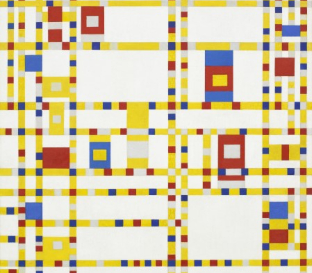 안녕하세요. 손용준 인문·예술전문가입니다. 몬드리안이 이 작품에서 표현 하곶 했던 것은 스트리트와 에비뉴는 각각 그림을 구성하는 노란색 가로선과 세로선이고, 스퀘어는 그림 곳곳에 네 개의 색을 통해 표현되어 있는 블록보다 큰, 다양한 크기의 사각형들 입니다. 이 블록, 스트리트, 에비뉴, 스퀘어를 포함하는 완벽한 격자형의 구조를 가지고 있는 구성으로부터 감상자는 뉴욕의 역동성과 부기-우기의 리듬을 연상하게 되는 것 입니다. 이러한 나누어진 격자와 사각형의 틀 속에서 인간의 원초적 지각이, 역동성과 리듬에 대한 지각을 표현 하곶 했던 것 같습니다.