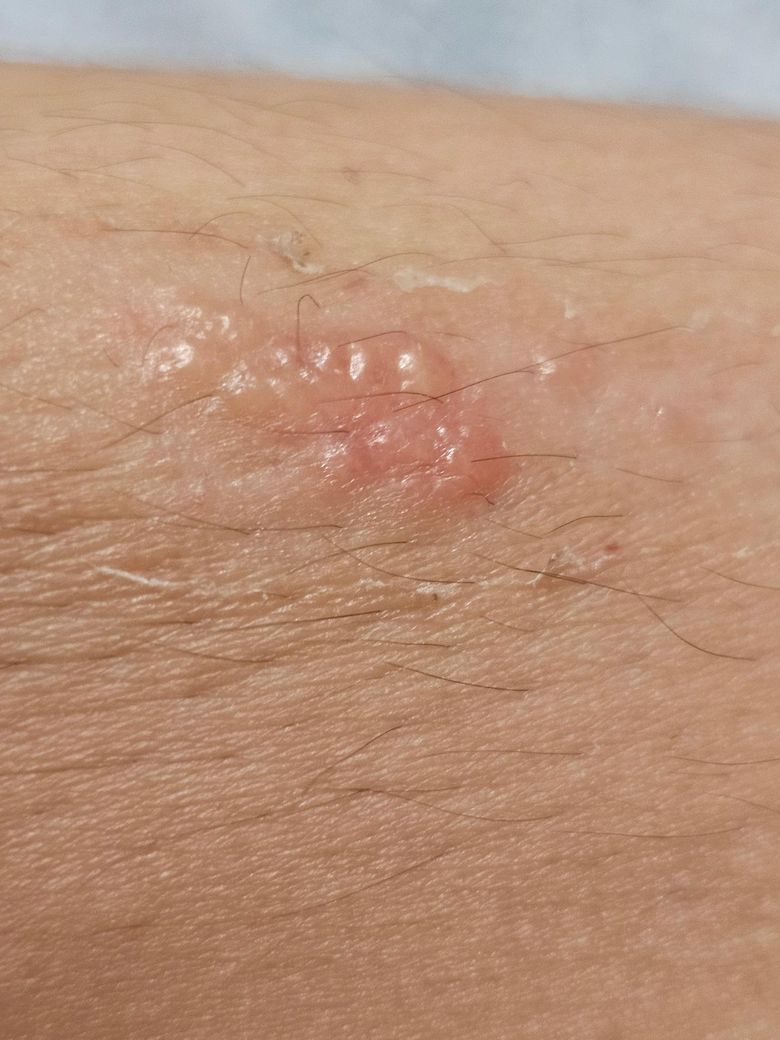 런닝머신 벨트에 쓸려서 표피성 2도 화상을 진단받고 벙원에서 알콜로 문질러 상처 벗겨내는 방식으로 진료하고 다 나아서 흉터 케어하는 실리콘연고,로션,pa50 썬크림 처방받고 바르고 있었는데 너무 많이 바르면 습진이 생긴다고 했는데 상처가 이렇게 부풀러 올랐는데 혹시 습진인가요? 부위는 다리인데 약을 그만 발라야 할까요
