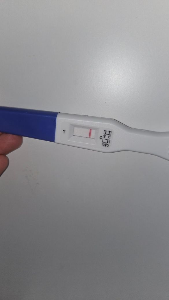 올리신 사진을 통해서 보았을 때에는 한 줄만 보입니다. 그러므로 결과는 음성, 즉, 비임신이 되겠습니다. 해당 내용을 통해서 임신 가능성이 확실히 없다고 장담할 수는 없습니다. 다만, 관계를 가젔던 시기나 기타 정황을 보았을 때 가능성이 매우 낮아 보이긴 합니다.