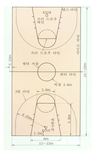 농구에서 3점슛 라인은 몇미터인지 기점은 어디인지 궁금해요