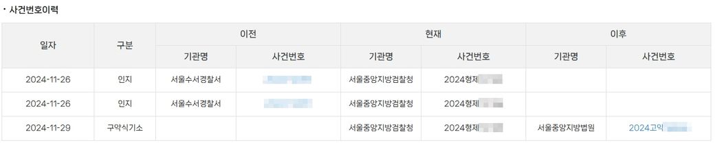 사건형사사법포털에서 검찰사건조회를 해보니 가장 최종적으로 서울중앙지방법원에 사건번호가 나와있네요.