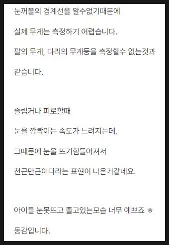눈커플의 무게는 측정 할 수 없습니다. 너무나 천근만근이라서요~^^!!!!!!'