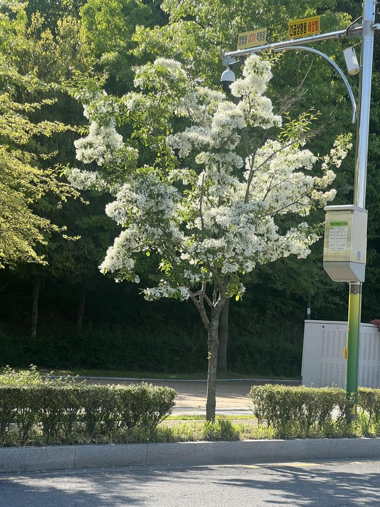 사진속 나무는 이팝나무입니다. 이팝나무는 생육이 빠르고 꽃이 향기롭고 아름답다는 특징을 가지고 있습니다.