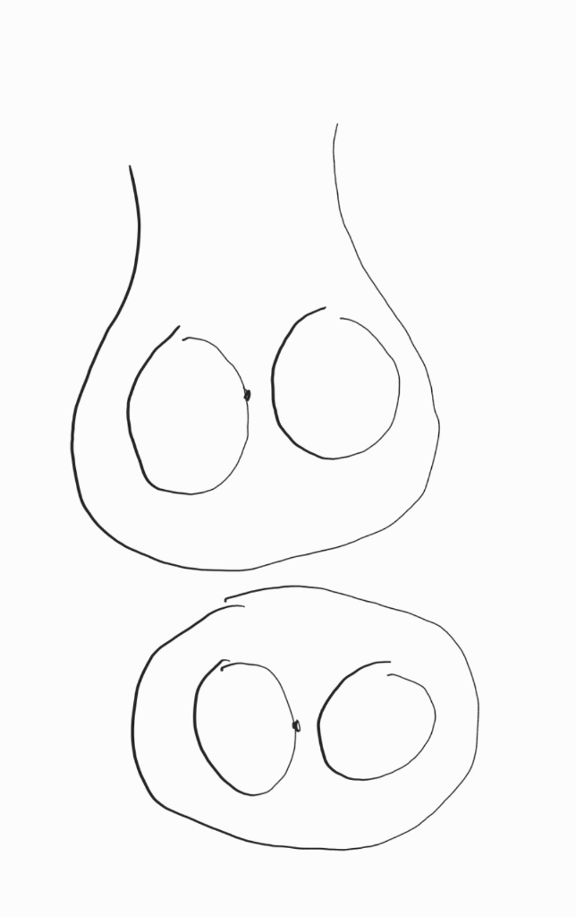 그림은 정면에서 봤을 때와 위에서 봤을때 혹의 위치를 표시한 것입니다.