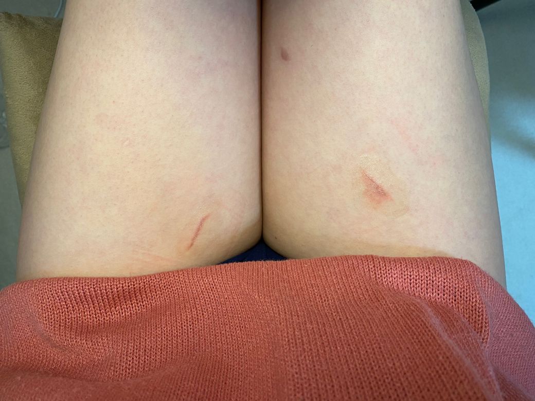 지난 토요일 봉고데기를 하다가 실수로 고데기를 놓쳐 허벅지에 떨어뜨렸습니다ㅠㅠ