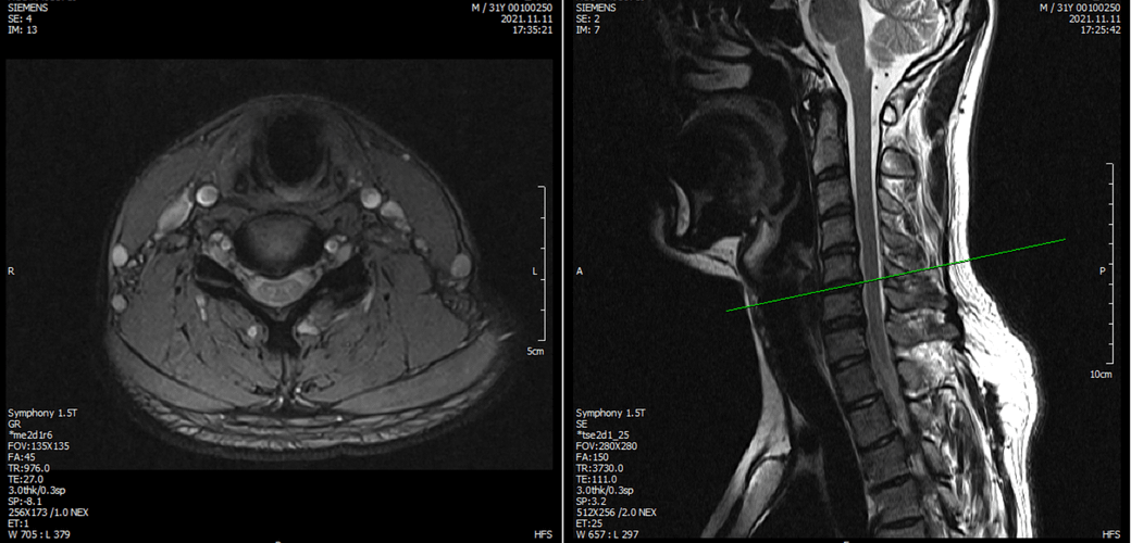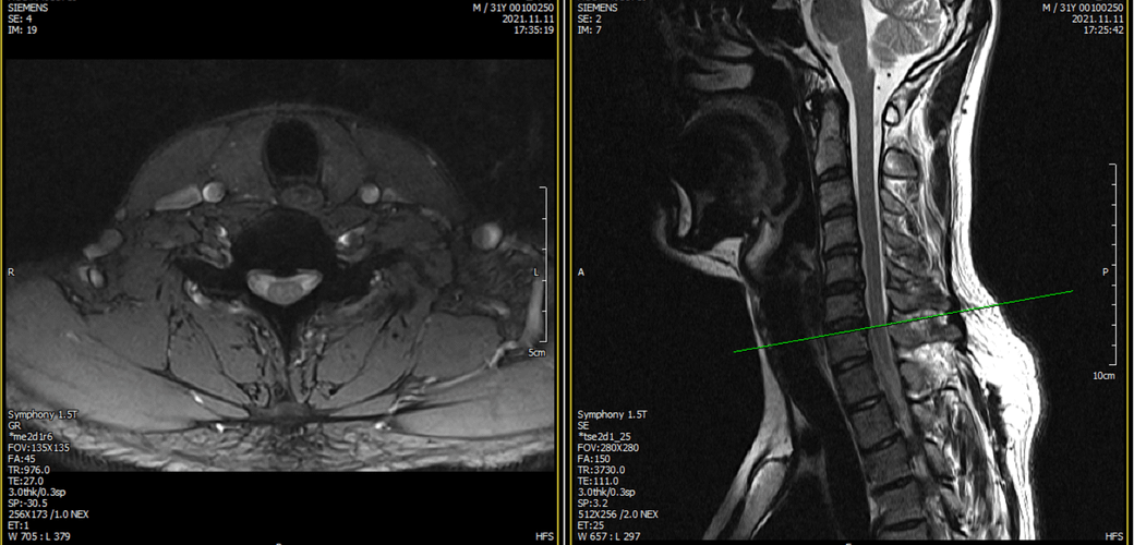 ※우리들병원 (신경외과 대표원장) : 경추,요추 MRI 촬영했고 요추는 매우 건강하고 경추에는 일자목에 퇴행성 디스크가 보이지만 한쪽팔에 저림이나 힘빠짐을 유발할 정도는 절대아니고, 다른 원인을 찾아야한다고 했습니다.
