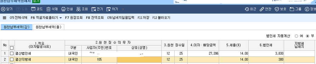 원천납부세액명세서에 지방세도 같이 입력되는데 어떻게해야할까요