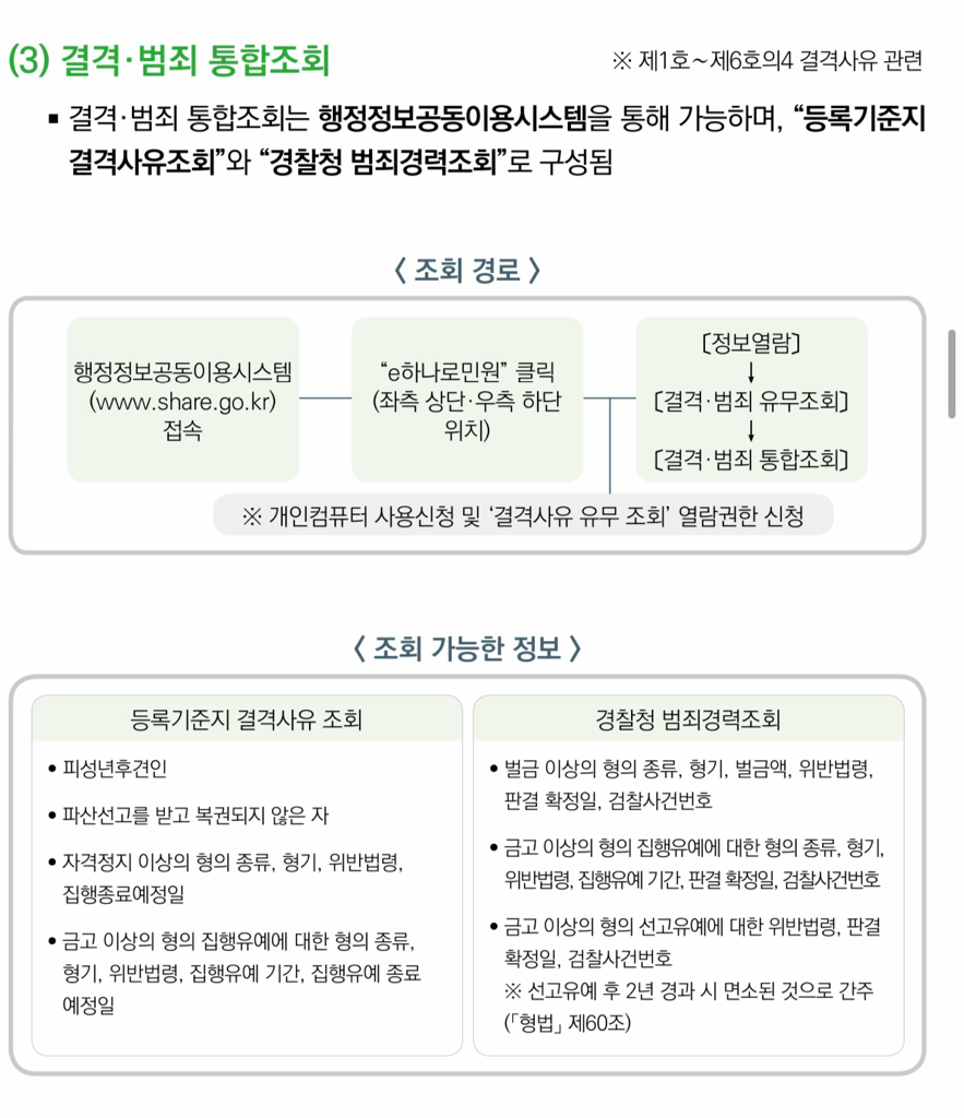 행정정보공동이용시스템으로 공무원 임용 관련 범죄경력 통합조회 시, 아동복지법 위반도 조회됩니다.
