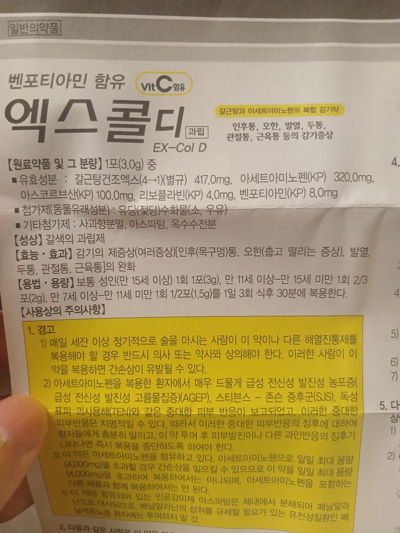 현재 몸살과 열이 잇어서 여기 적은 약을 먹는데요.하루동안 먹은 약을 설명하자면 다음과 같아요.위 2개 사진 속 약 둘다 한끼에 하나씩 하루 3번 먹으래요 이걸 아마 하루에 두끼 정도 먹은거라 하루 2번 먹었구요 그리고 그날 저녁 병원에서 처방 받은 약을 하나 먹었구요. 그리고 한 5시간 정도 지나서 너무 몸살이 다시 심하길래 그날 저녁 밤 12시 그러니까 다음날이 시작되는 12시인거죠..그날 밤 12시8분에 처방 받은 몸살약 또 먹엇구요.. 그리고 시간지나서 아침되서 처방 받은약 먹고 점심약도 먹엇습니다..