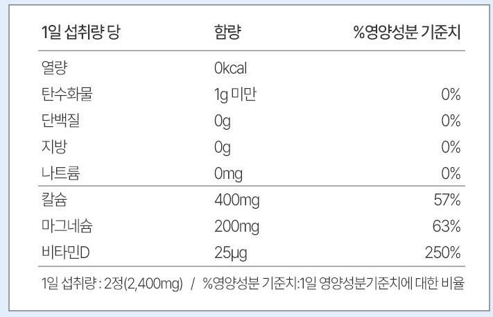 칼마디 - 칼슘 400mg, 마그네슘200mg, 비타민D 25ug _ 2000UI 섭취중입니다.